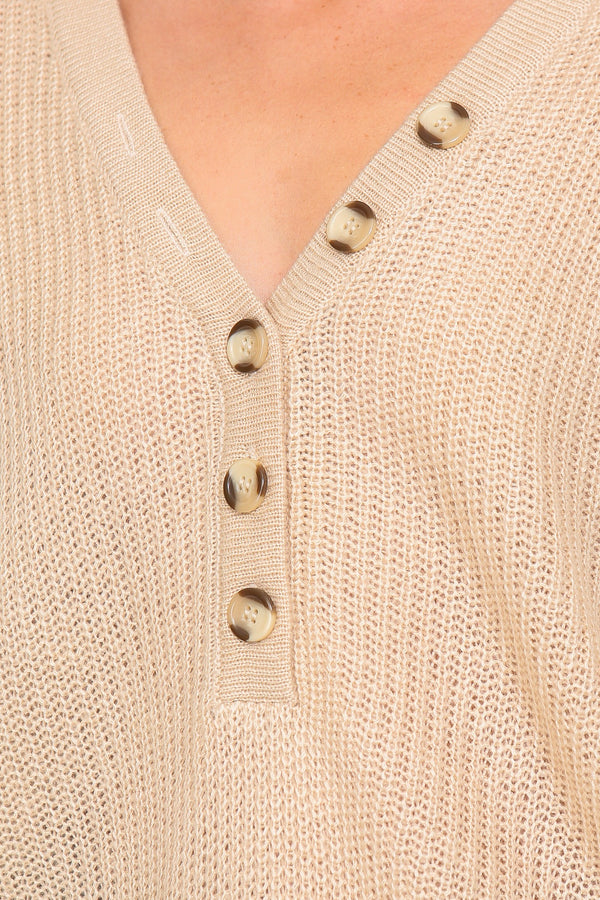 Cozy meets cool in the Beck Button Front Sweater—your new go-to for effortless layering. Crafted from soft, breathable knit, it sports a chic V-neck with playful tortoiseshell buttons that add a fun twist. The relaxed fit and drop shoulders keep things comfy but stylish, while the warm Taupe shade pairs perfectly with your fall and winter wardrobe.