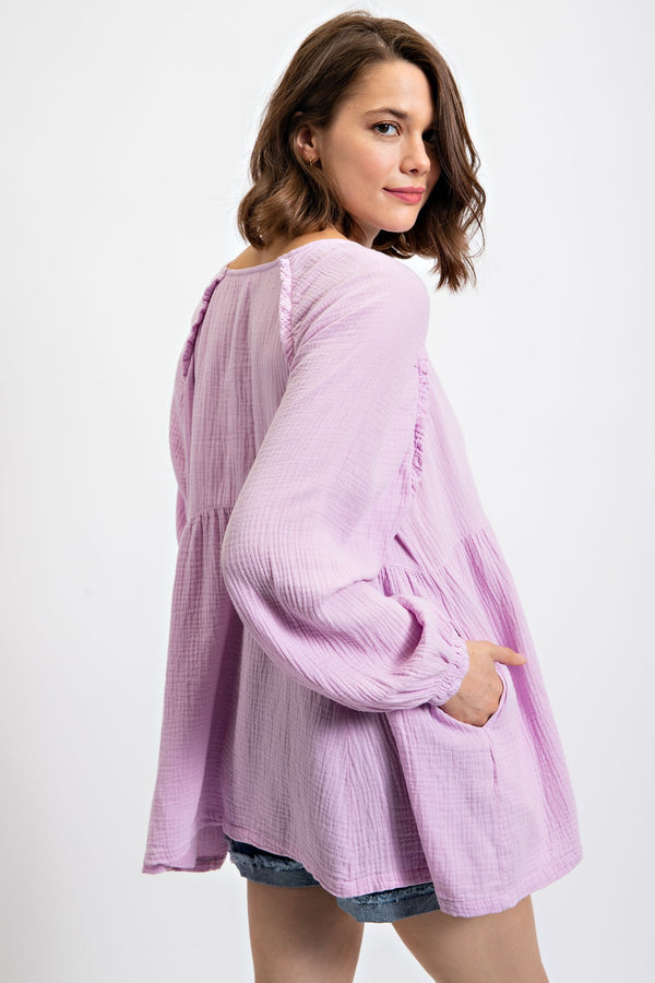 Brighten My Day Babydoll Top || Lilac, Lime or Sky Blue