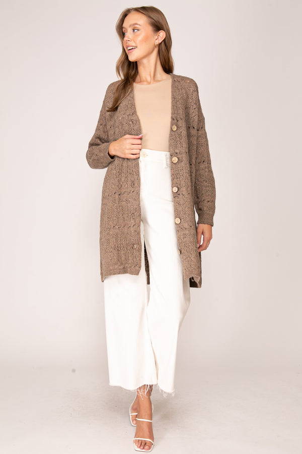 Add a touch of whimsy to your wardrobe with the Come Back To Me Cardi, available in charming Brown or vibrant Peacock. This long-sleeve pointelle knit cardigan delights with playful airy detailing and a half button-down front, letting you mix up your look with ease. Cozy yet breathable, it’s perfect for layering on crisp days or cozying up at home. Whether paired with your favorite jeans, skirts, or dresses, this relaxed-fit cardigan adds a fun, flirty flair to any outfit—making it your new go-to for effortless style all year long.