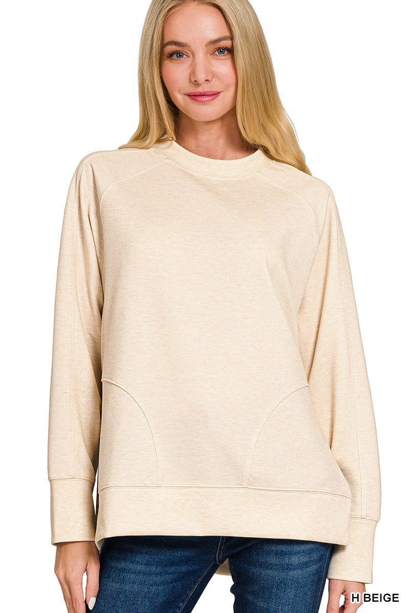 Slip into effortless style with this scuba knit pullover—your new go-to for laid-back vibes. Crafted from soft, stretchy fabric, it features a relaxed oversized silhouette that moves with you, plus cheeky side slits for that extra touch of ease. The classic round neck keeps things simple and versatile, making it perfect for everything from coffee runs to cozy nights in. Available in four gorgeous colors, this casual basic is basically a hug you can wear. Comfort meets cool—no fuss required.
