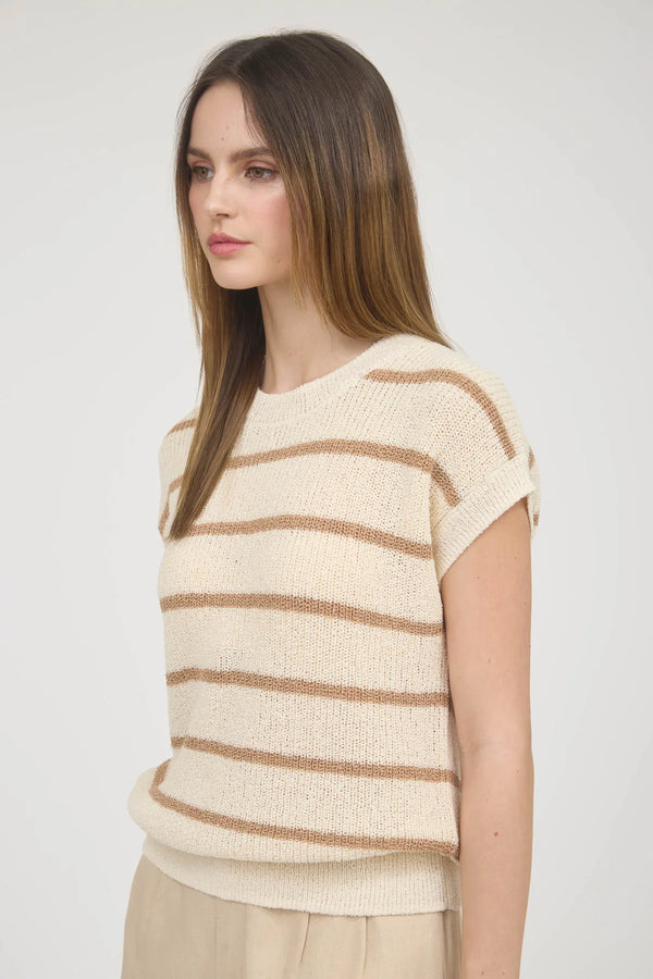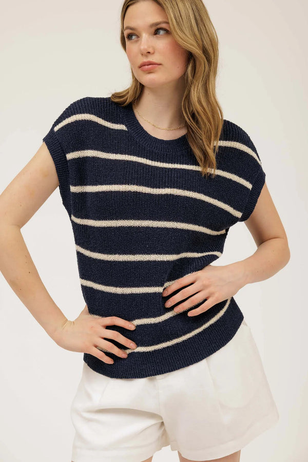 Get effortlessly chic with our Effortless Style Sweater Top! With its classic stripe pattern and relaxed fit, this knit pullover top is a go-to choice for any occasion. The extended drop shoulder adds a touch of sophistication to this elevated style. Available in Ivory, Light Khaki, and Navy.