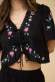 Festival Season Tie Front Embroidered Top || Black or Natural