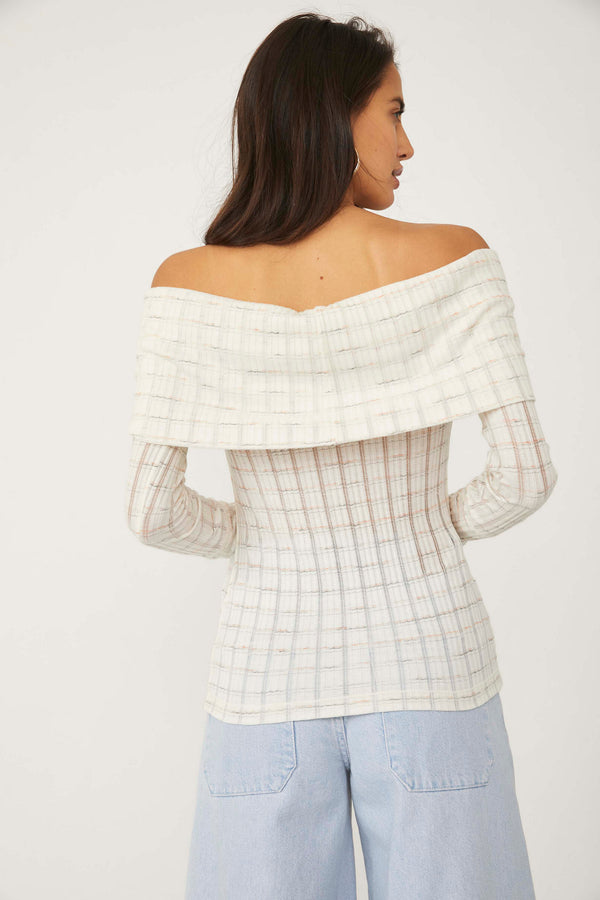 Just as effortless as it is essential, this timeless top is featured in an off-the-shoulder silhouette with folded neckline and perfectly printed plaid fabrication for classic style no matter the season.