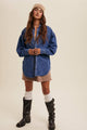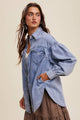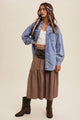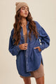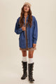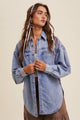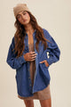 The Full Of Heart Shacket brings a playful twist to your wardrobe with its charming heart-shaped pocket. Made from light-wash denim, it offers a relaxed oversized fit and a rounded hemline for effortless style. The button-up front and gathered back yoke add functional and flattering details. Perfect for layering, this shacket pairs beautifully with dresses, skirts, or jeans for a casual, chic look that’s full of personality.