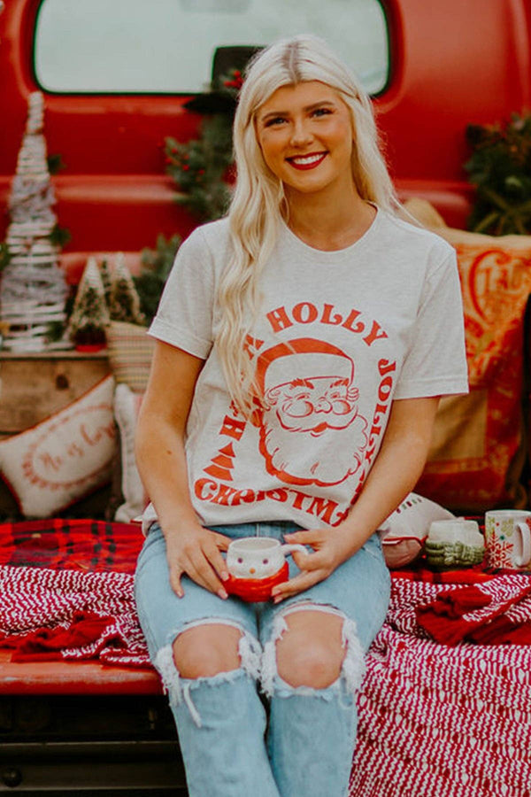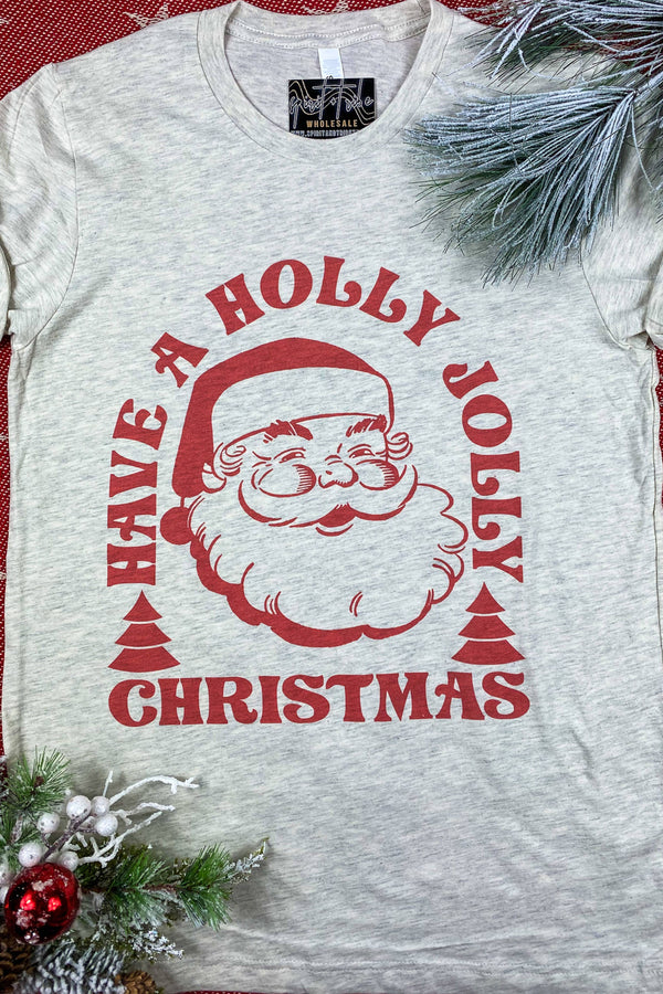 Celebrate the season in style with our Holly Jolly Christmas Graphic Tee. This playful tee features a vintage Santa and the phrase "have a holly jolly Christmas" in festive red. Perfect for parties or cozy Christmas activities. (Don't be a Scrooge, get one for yourself and a friend!)