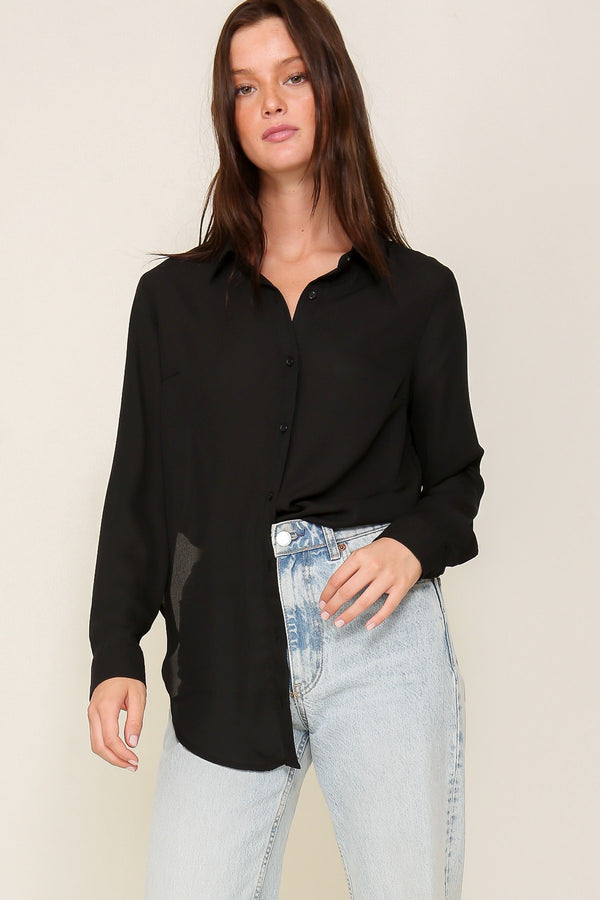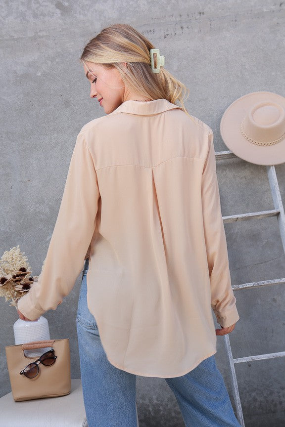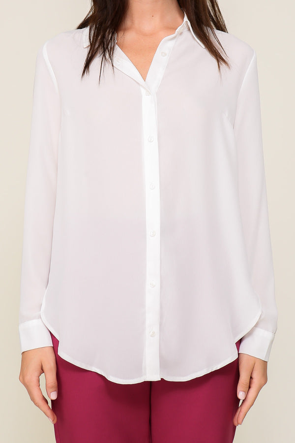Elevate your style with the Impeccable Style Blouse. Gracefully crafted from chiffon, this blouse features side slits for added charm. The long sleeves are adorned with buttons, giving it just the right touch of sophistication. Perfect for any occasion, let this oversized blouse be the enchanting addition to your wardrobe.