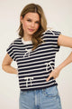 Add some nautical charm to your wardrobe with our Nautical Bow Top. This chic and relaxed knit top features a classic white and navy stripe pattern, accented with a playful white bow detail. With its coastal nautical vibe, this top is perfect for adding a cutesy touch to any outfit.