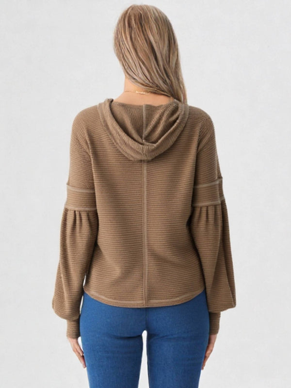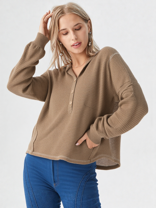 Meet your new go-to for cozy days: the Have It Your Way Hooded Henley Top. With its relaxed boxy fit and long puff sleeves, this olive green knit top adds a playful touch to casual looks. The raw edge detail and V-neck with button-up front keep things interesting, while the pocket patch is perfect little touch. Slip it on and enjoy all the comfy fall vibes you deserve!