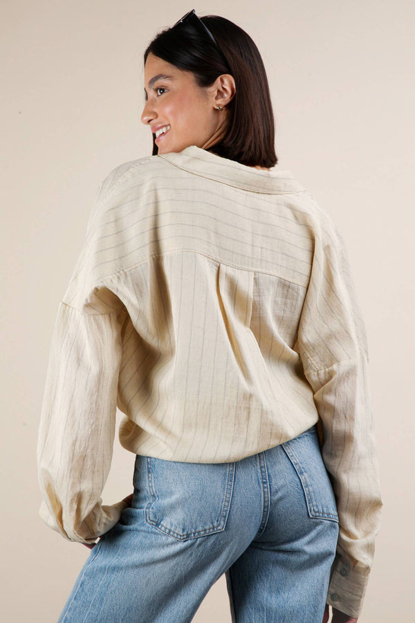 Step up your layering game with the Cortlyn Contrast Stripe Button Front Top. This oversized, lightweight shirt features playful mix of vertical and horizontal stripes for a look that's both unique and effortlessly cool. With a relaxed fit, long sleeves, and a handy patch pocket, it’s the easygoing, stylish piece you’ll reach for again and again.