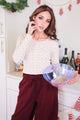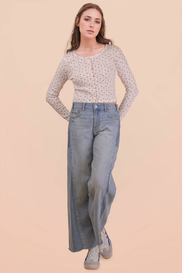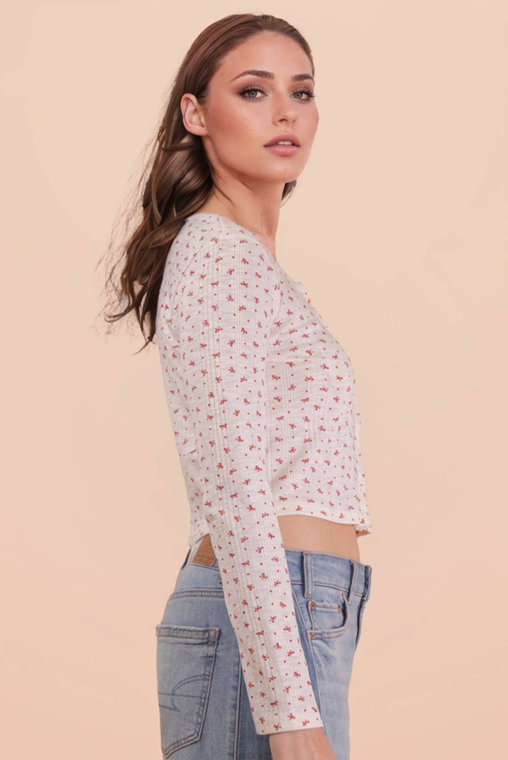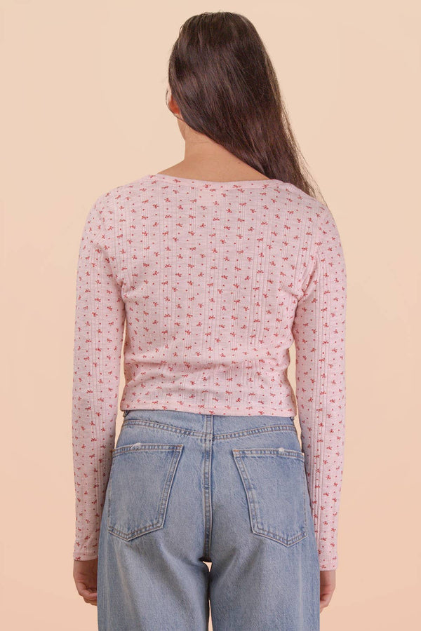 Britt Button Front Cardi Top || Blush Bow, Cream Bow or Cream Floral