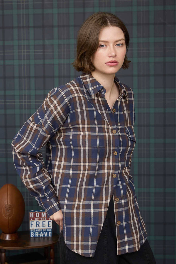 Introducing your new fall essential—the Picture Perfect Plaid Shirt! This cozy woven top features a classic collared neckline, long sleeves with a trendy drop shoulder cut, and functional button-down closure. Practical pocket details with flaps add charm and utility, while the timeless autumn plaid pattern keeps things effortlessly stylish. Crafted from 100% cotton for breathable comfort, this casual beauty works solo or layered under sweaters and jackets. Choose between rich burgundy or deep navy to match your seasonal wardrobe. Simple, versatile, and oh-so-perfect for those crisp autumn days!
