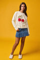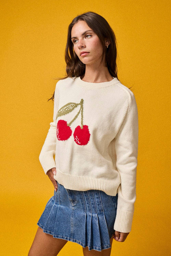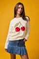 Add a splash of fun to your wardrobe with the Cherry On Top Sweater. This cozy knit pullover showcases a bold cherry graphic, ribbed cuffs and hem, and a retro-inspired cute vibe. Perfectly playful and girly, it’s a cheerful essential that keeps you comfy while standing out with style.