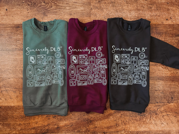 Sincerely DLB Crewneck Sweatshirt || Army, Brown or Maroon - S / ARMY is backordered and will ship as soon as it is back in stock.