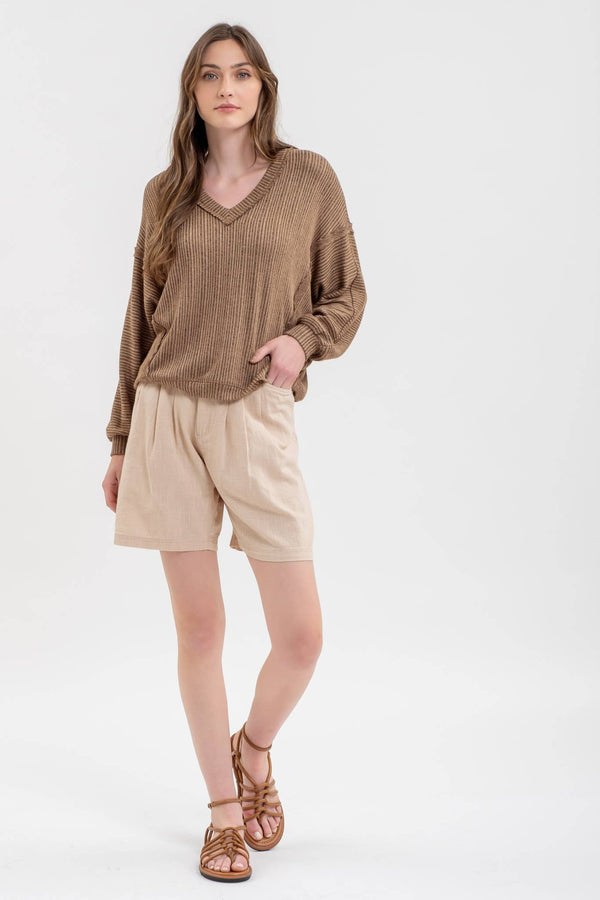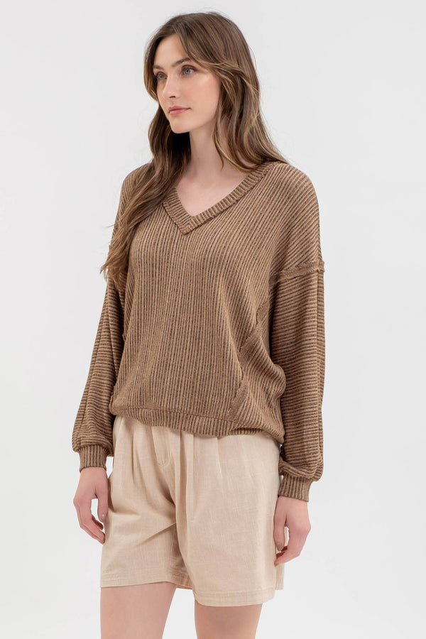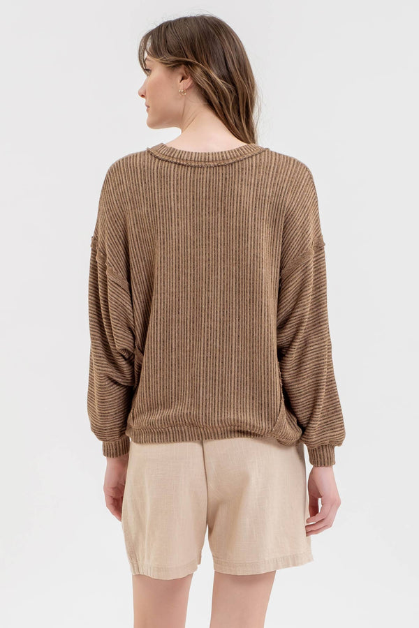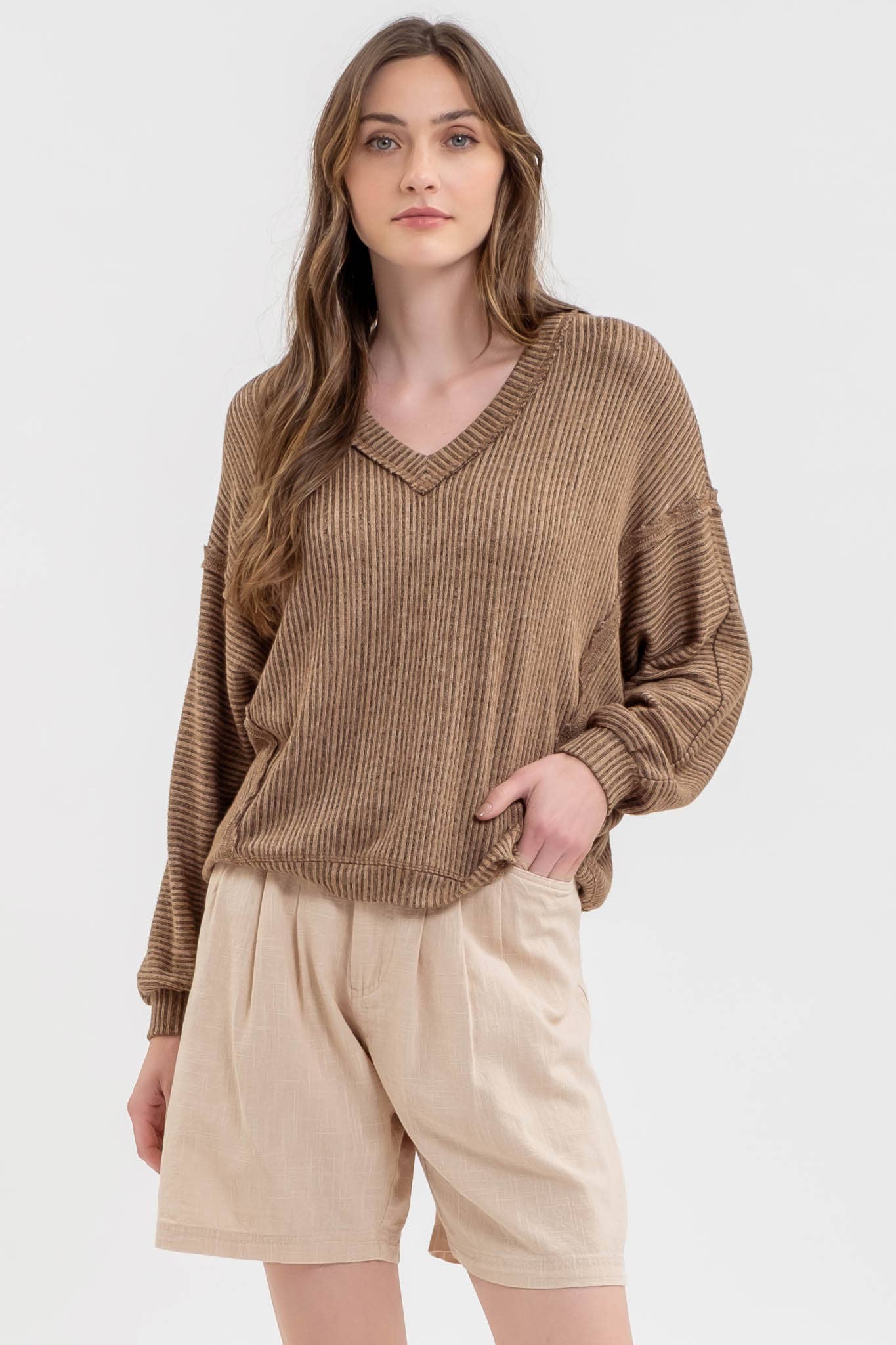 Elevate your everyday with this Desert Road Top that's got serious style credentials. Choose between warm brown or soft taupe, and get ready to love the relaxed drop shoulder fit that feels like a hug. The exposed seams and raw edges give it that intentional, artisanal edge—proof that effortless can still be chic. Long sleeves keep things cozy, while the touch of spandex ensures you can move freely through your day. It's the kind of top that looks thrown together but actually looks put-together.