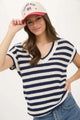 Dive into summer fun with our breezy crochet knit sweater! This playful v-neck top features charming stripes in either navy/white or red/white for that perfect patriotic pop. With its relaxed fit and drop shoulder design, you'll stay comfy while looking cute at every backyard barbecue. The lightweight crochet texture adds just the right amount of casual elegance to your picnic ensemble!