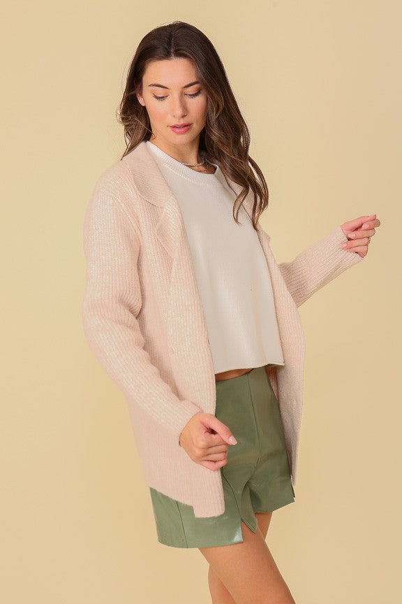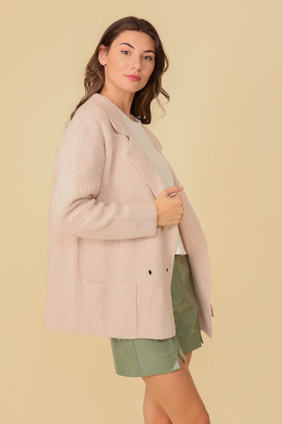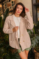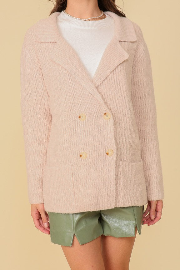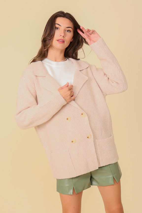 Cozy up in the Sunday Stroll Sweater Jacket—your new go-to for chilly days! This wool-like, double-breasted beauty features wide notched lapels, drop shoulders, and handy side pockets for all your essentials. Its relaxed ribbed knit adds warmth without sacrificing style, making it easy to elevate any casual outfit. Perfect for sweater weather adventures like apple picking, brunch dates, or game day gatherings, this jacket pairs effortlessly with jeans and booties to keep you snug and stylish all season long.