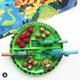 The dino plate is designed to fit and work together with the dino utensils. Dinosaur footprints divide each section with specific locations for the fork, spoon, and pusher to park when not being used to eat with. Made and packaged in USA. Microwave and dishwasher safe. Food safety tested materials, CPSIA compliant; BPA, Phthalate, PVC, lead and paint free.