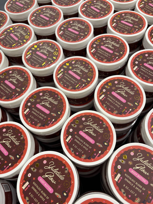 Wrap yourself in the cozy comfort of Yuletide Glow a rich, fast-absorbing body butter featuring warm notes of spiced apple, cinnamon, and clove. Embrace the warmth of the season with Yuletide Glow, a nostalgic fragrance inspired by the golden flicker of candlelight on cozy holiday evenings. This inviting blend opens with the familiar comfort of spiced apple and cinnamon, gently layered with notes of clove and soft, glowing woods.